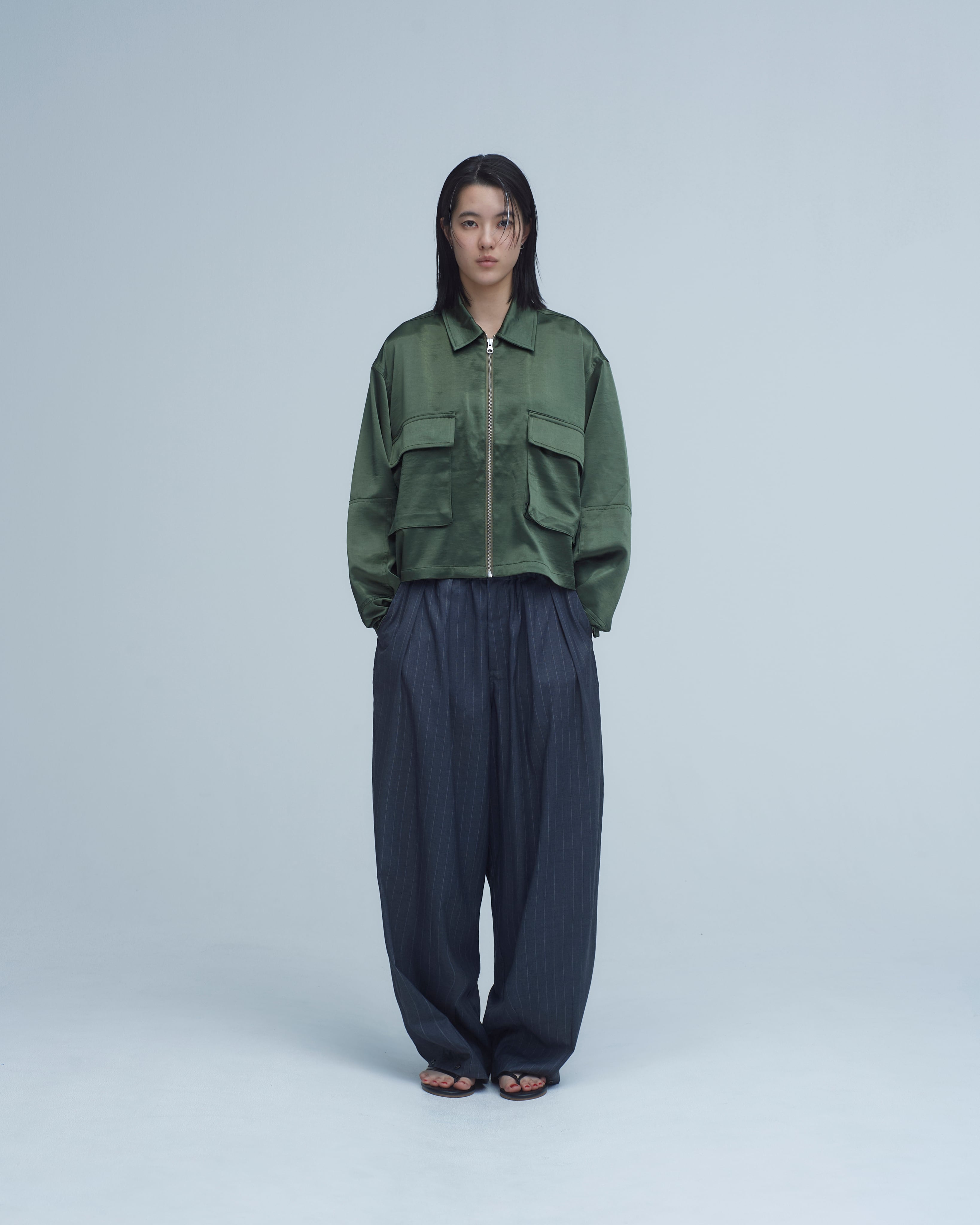 MRS.WORKWARE SATIN CROPPED ZIP JACKET - GREEN #748