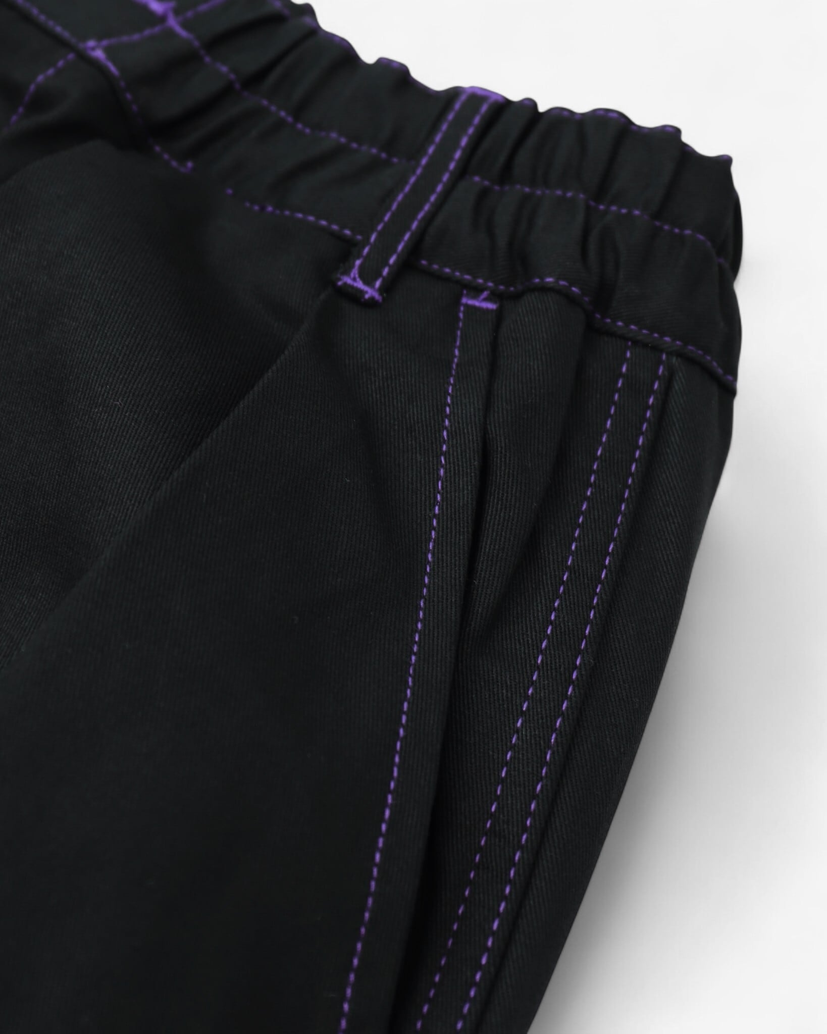 CONTRAST STITCH UNISEX BALLOON PANTS - GREEN x BLUE #444