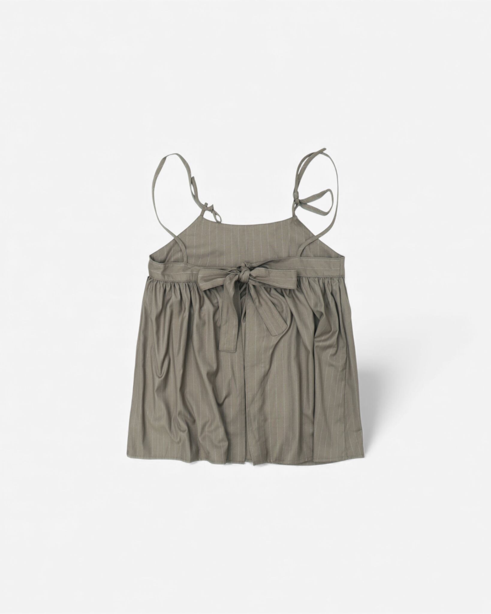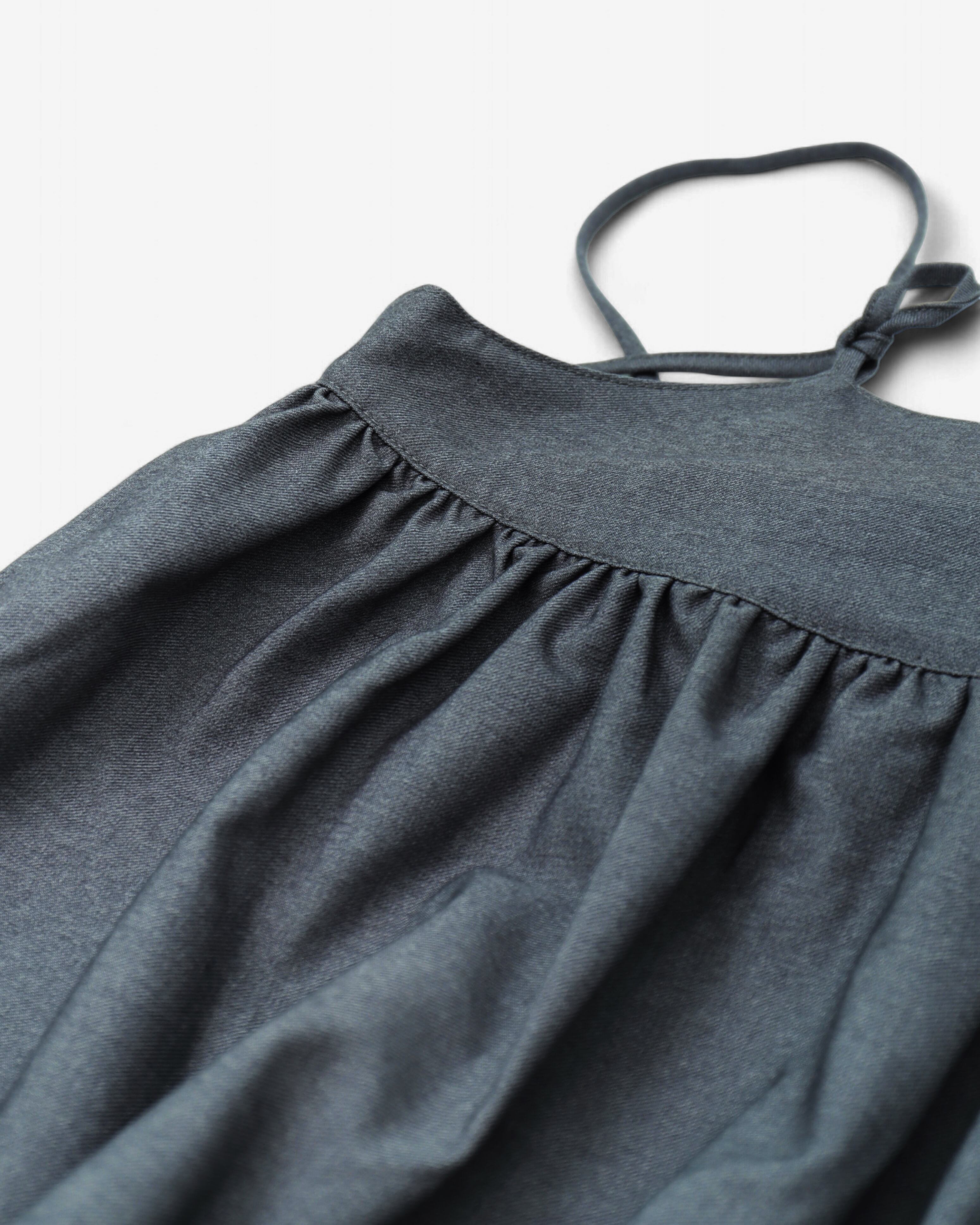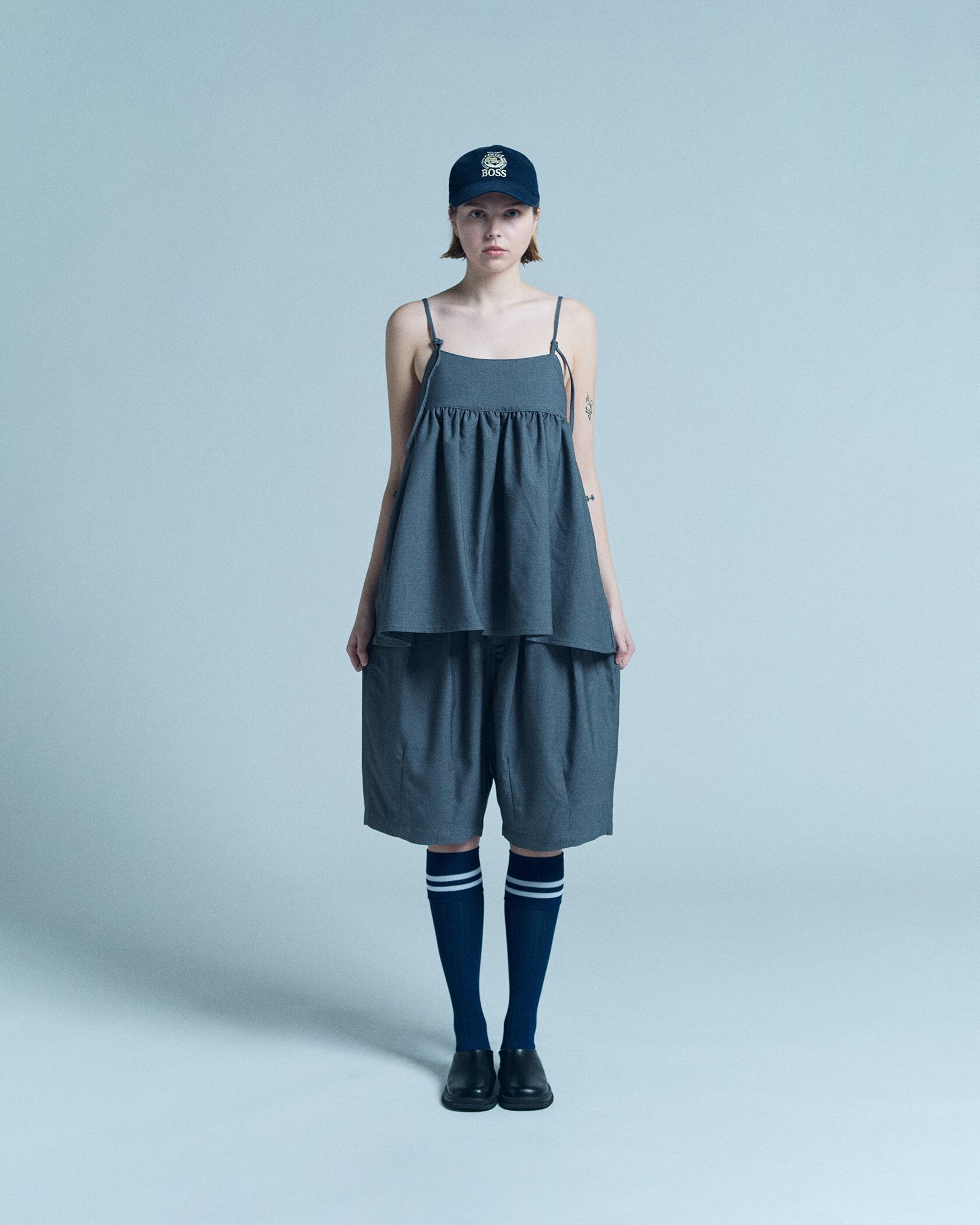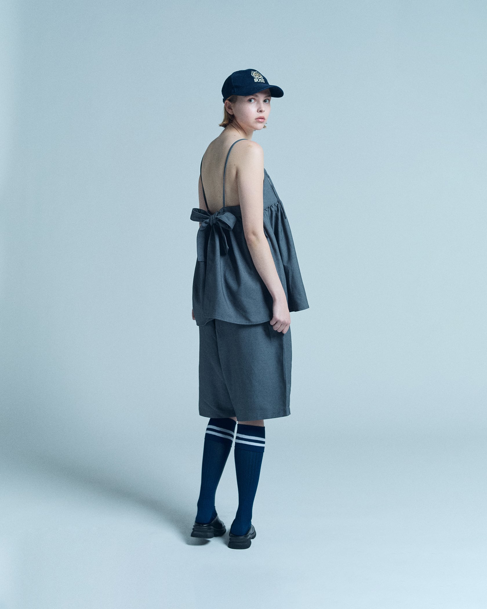 ドライでクリスプな手触りのスーティング素材。シャープでボリュームのあるシルエットが、軽量ながらもしっかりとした形をキープする。動くたびに布が体に沿い——シャツの上に重ねても、一枚で着ても。