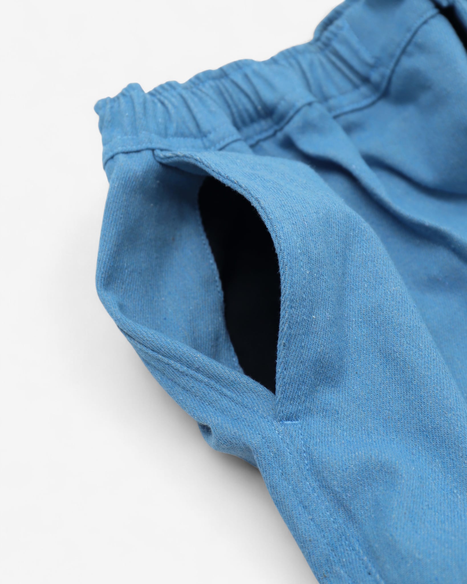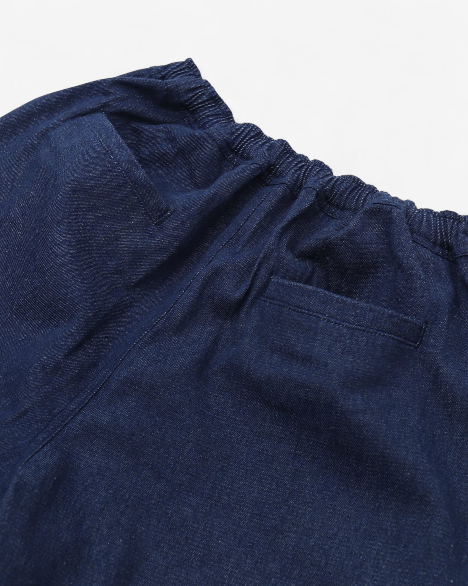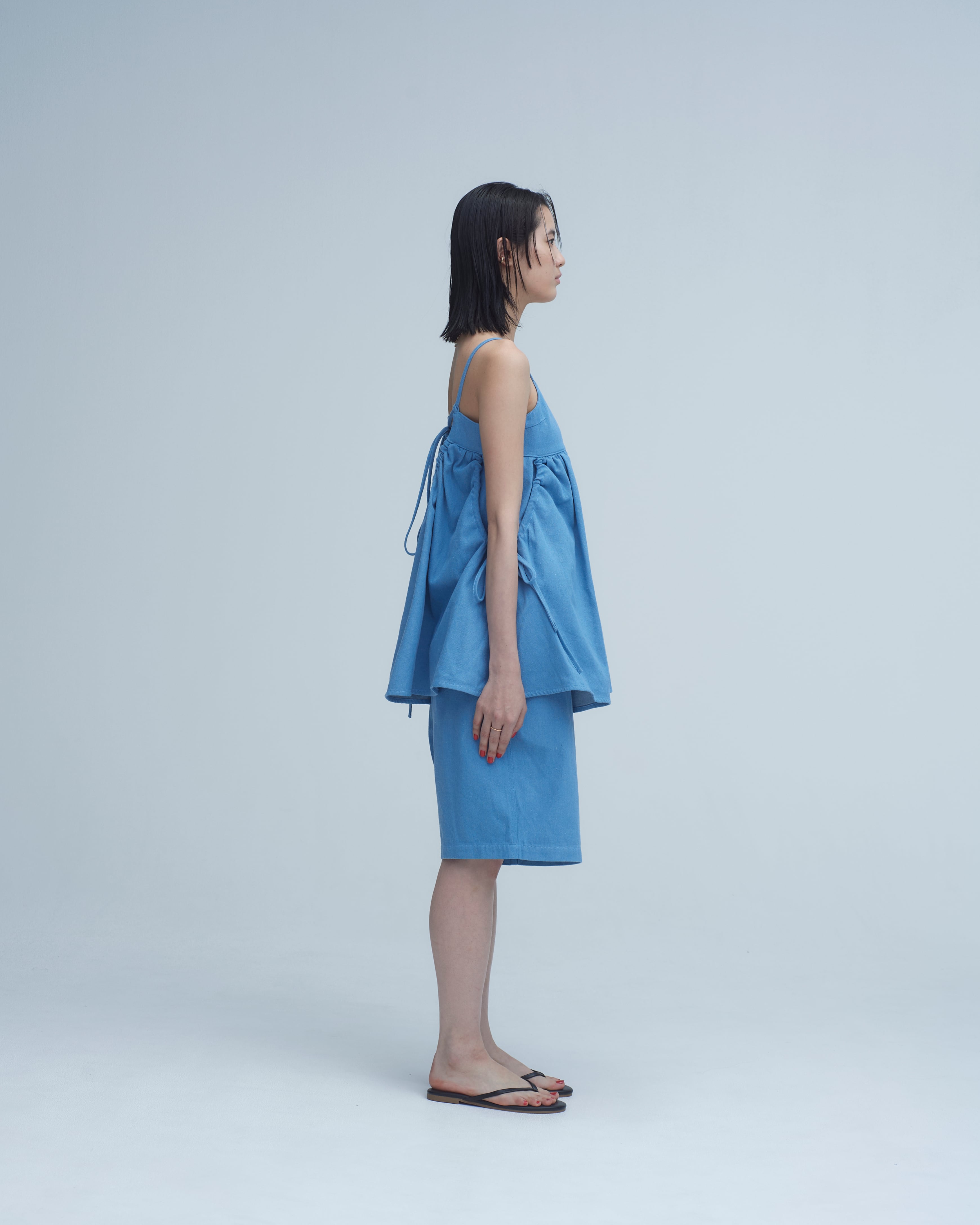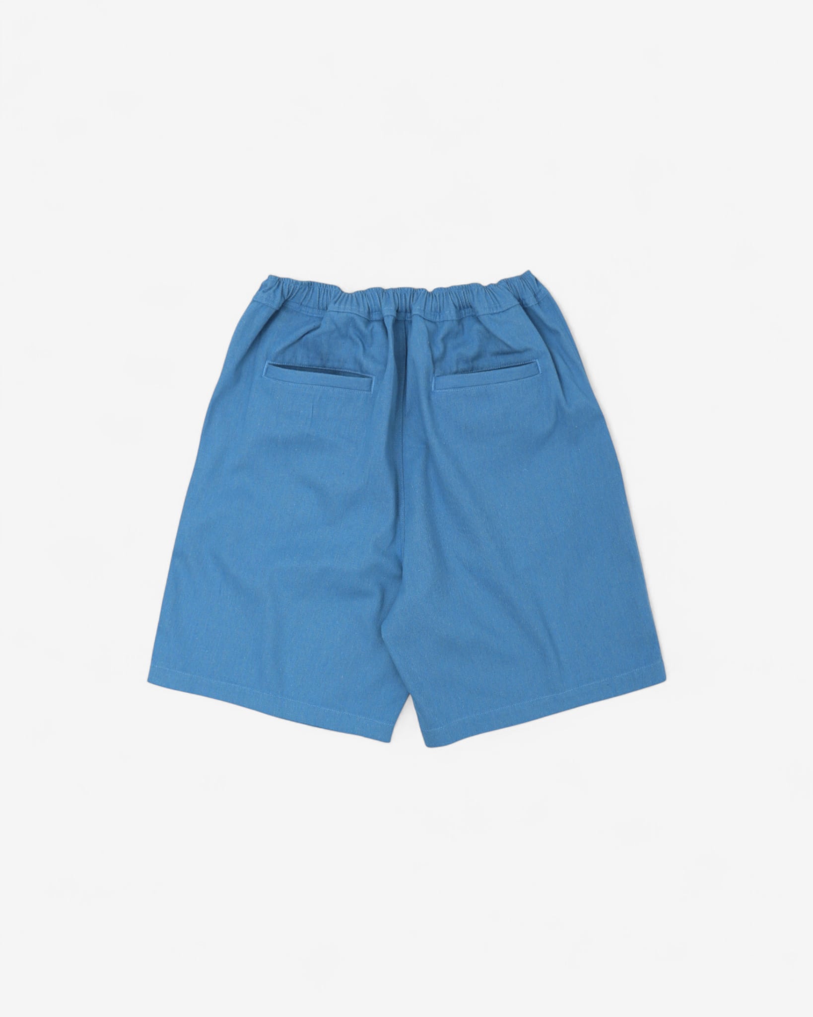 同シリーズのウォッシュドデニムで仕立てたワイドショーツ。ウォッシュ加工で生地の張りが抜け、最初から柔らかくドレープが出て、穿き始めからこなれた感覚がある。ライトティールとインディゴの2色展開。