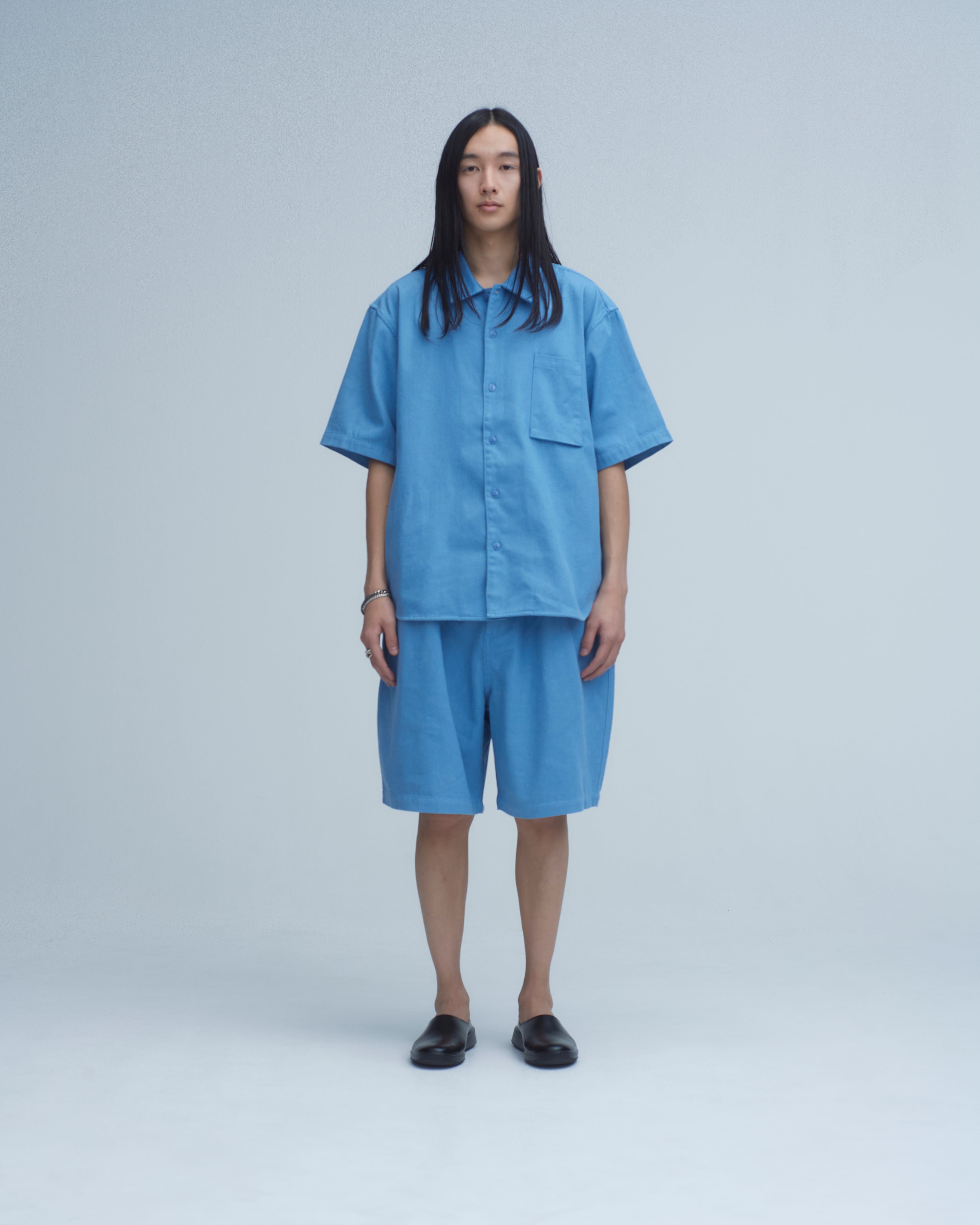 • SAND WASHED TWILL SS SHIRT - BLUE #700