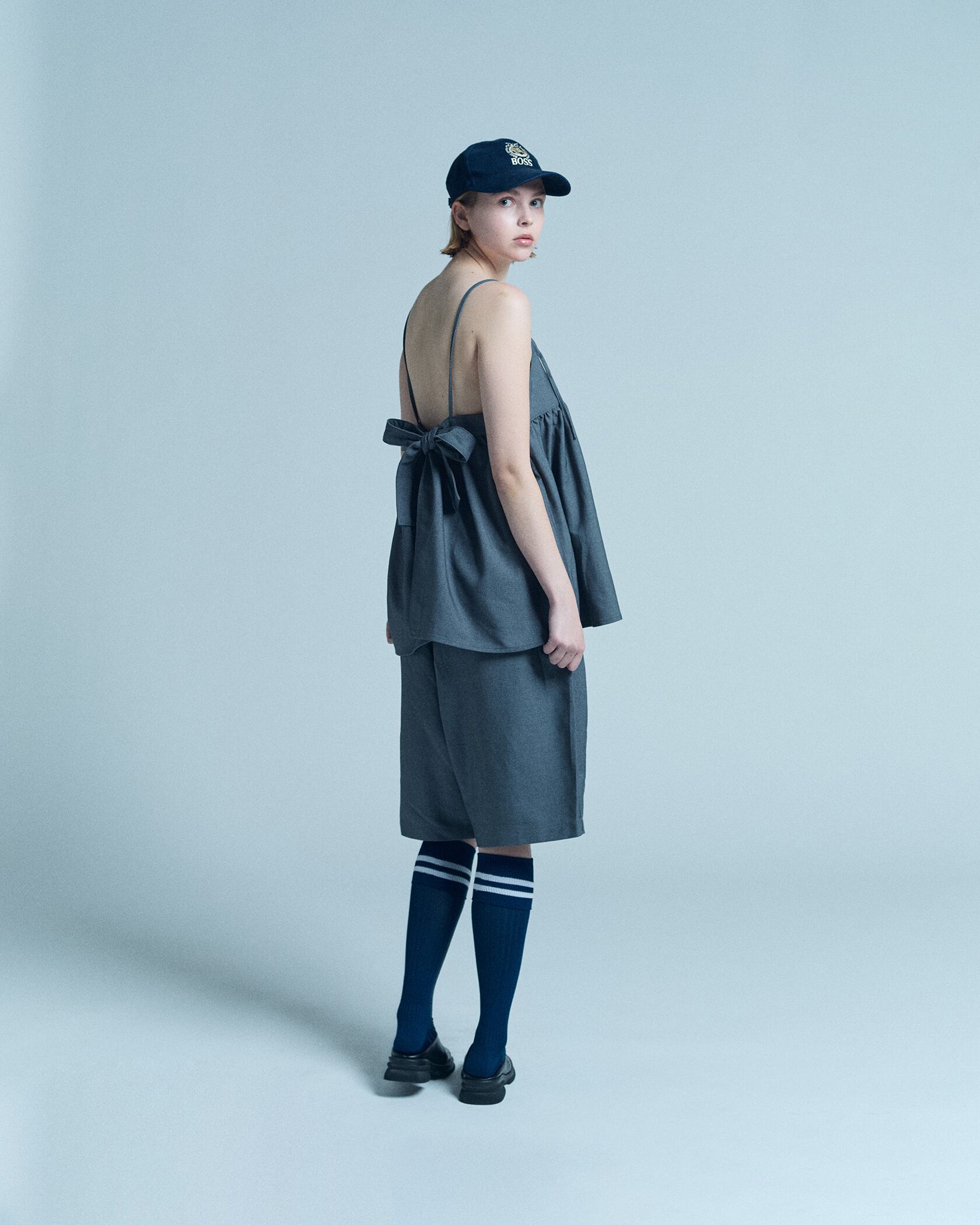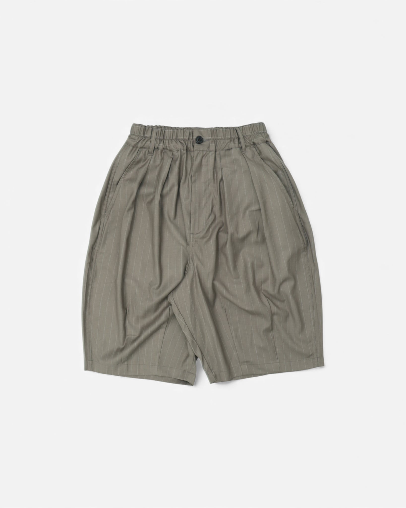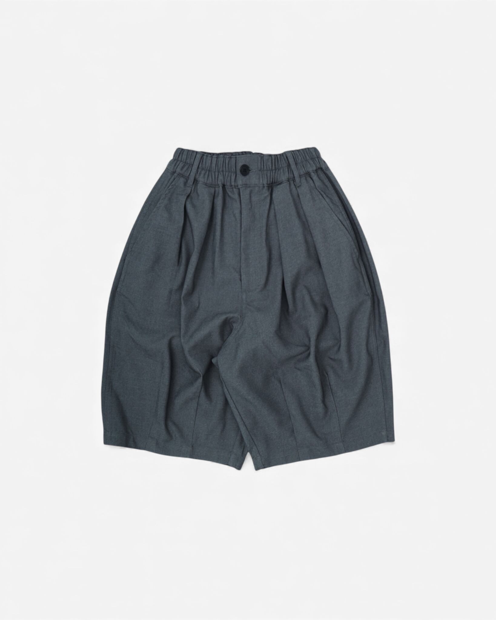 バルーンシルエットのスーツショーツ。フロントプリーツが前面にボリュームを生み出し、ヒップから膝にかけて丸みのある立体的なシルエットに。スーツ地の質感とドレープ感はそのままに、軽さを実現。4カラー展開、それぞれ異なる表情を持つ。