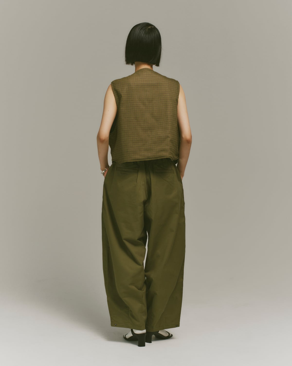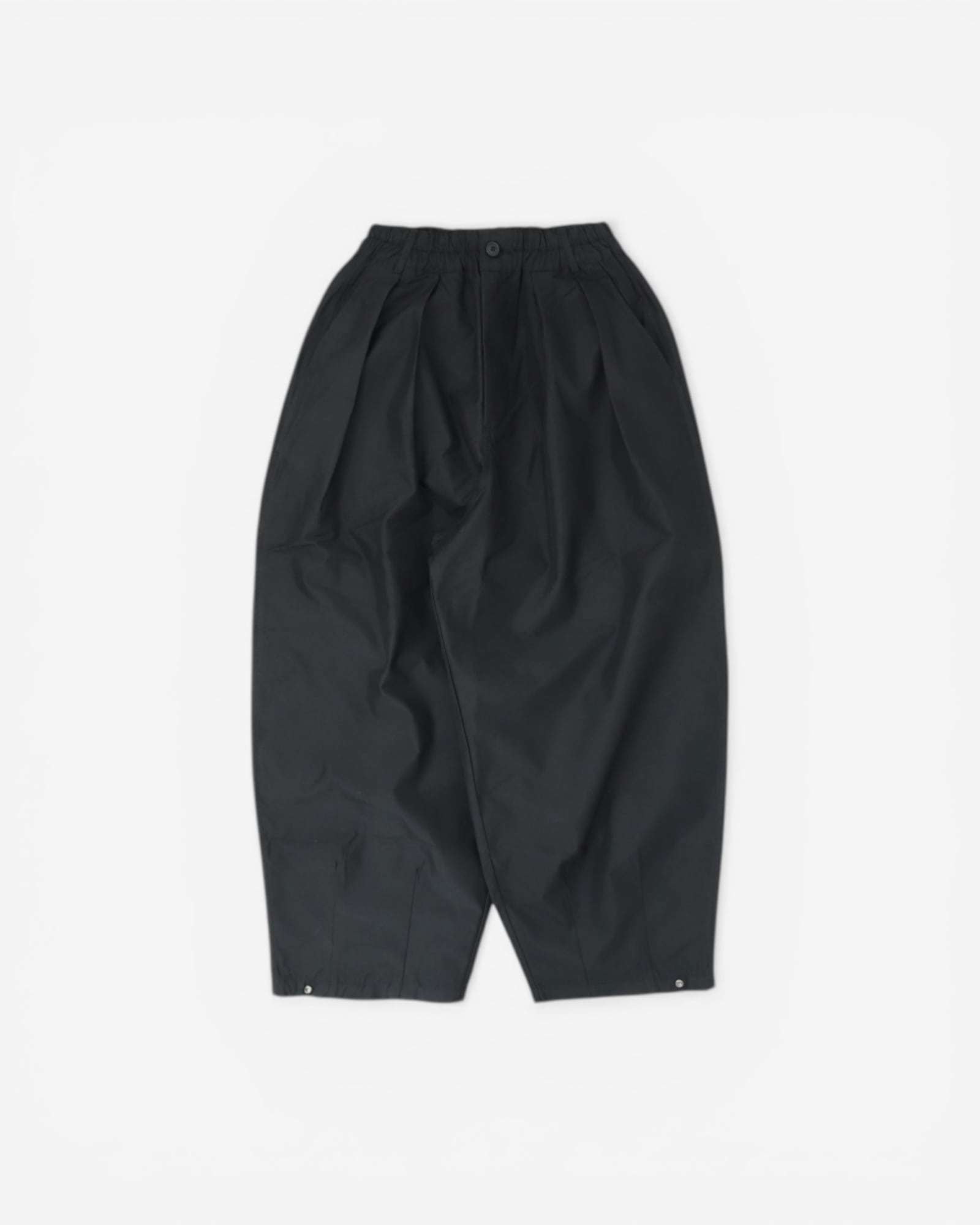ブランドのシグネチャーシルエットを軽量仕様にアレンジした一本。高密度コットンはドライでクリスプな手触りで、通気性と速乾性を備えながら、体から離れてふんわりと広がるカーブドシルエットをキープ。